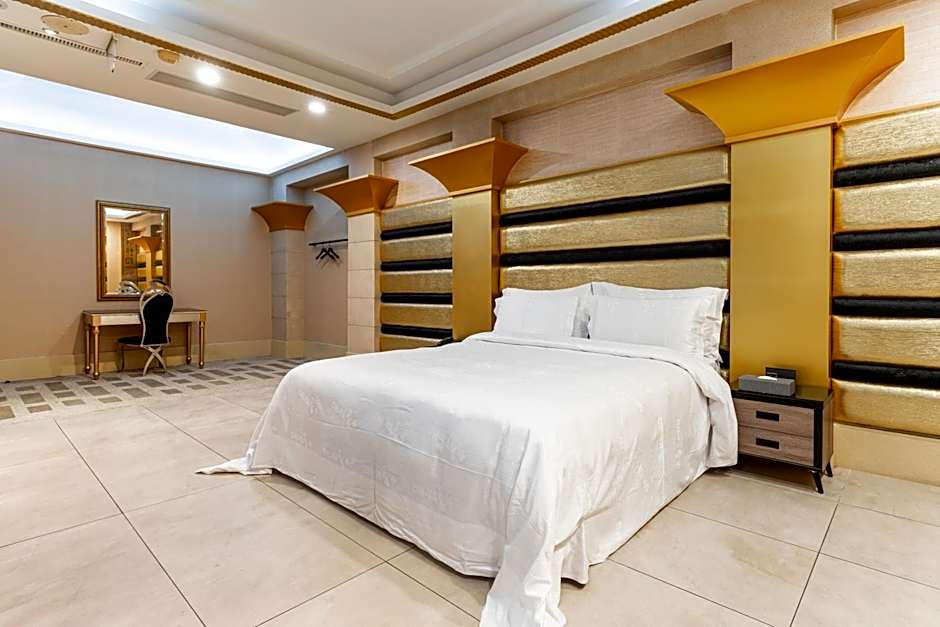 The hotel offers various types of rooms, including the Director Suite, Deluxe Double Room, Platinum Suite, Flagship Suite, and Presidential Suite. All rooms do not allow smoking and can accommodate 2 adults and 1 child. The bed size in each room is a Queen, with room sizes ranging from 883 sqft to 2131 sqft.