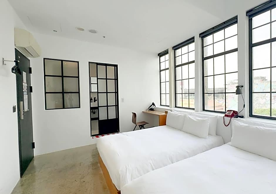 This double room features air conditioning, heating and soundproofing with industrial design features. Extras offer a mini-bar, branded coffee capsule and tea bags.