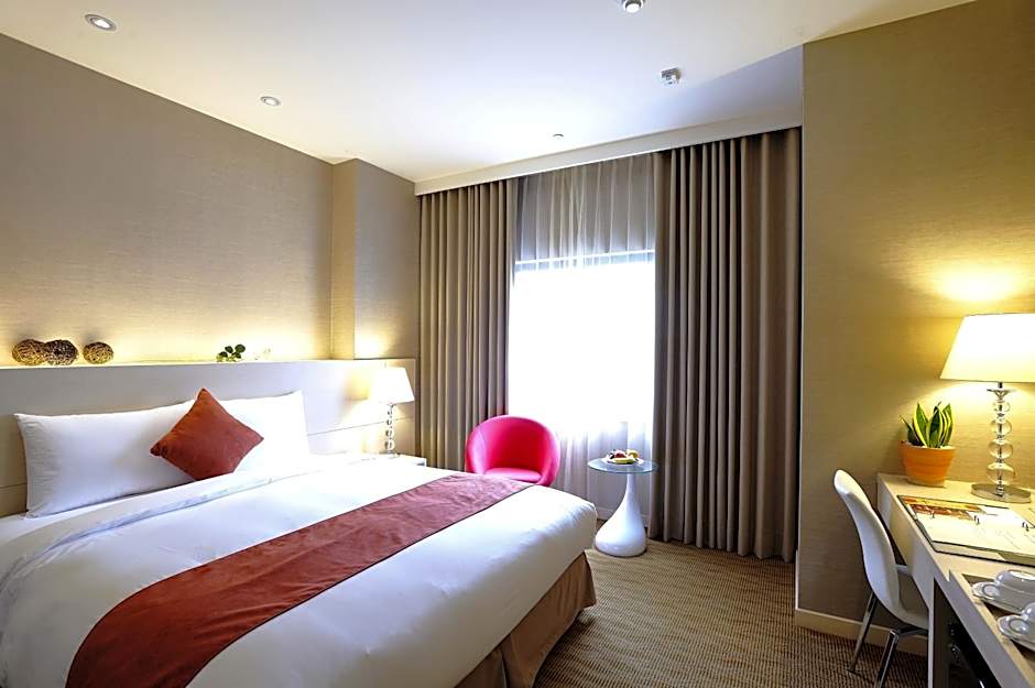 Onsite perks make exploring Taipei easy: free private parking and free on-site parking, complimentary Wifi, air conditioning, a 24-hour front desk, non-smoking rooms, an elevator, and rooms with a view—plus a bidet and a bathtub for a comfy soak.