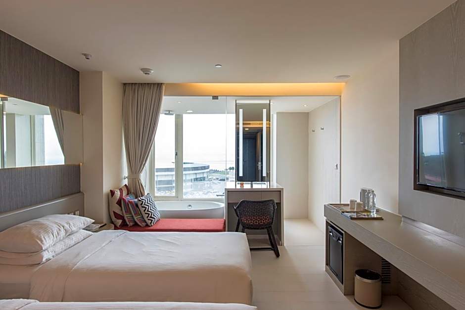 At Inhouse Hotel Yehliu, guests can enjoy their time with various leisure amenities. They can relax in the modern ambiance dining at the hotel's seafood restaurant, FISHERMAN’S KITCHEN漁人廚房. Besides, they can grab a cup of coffee at the modern ambiance cafe, 癮咖啡. For those looking to stay active, there's a fitness center available on-site. Families with kids can take advantage of the kids' club while the 24-hour front desk ensures round-the-clock assistance. Guests wishing for a little pampering can avail themselves of room service and enjoy a relaxing bath in the bathtub equipped with free toiletries in their private bathroom. With Wi-Fi and air conditioning as part of the amenities, guests can stay connected and comfortable throughout their stay.