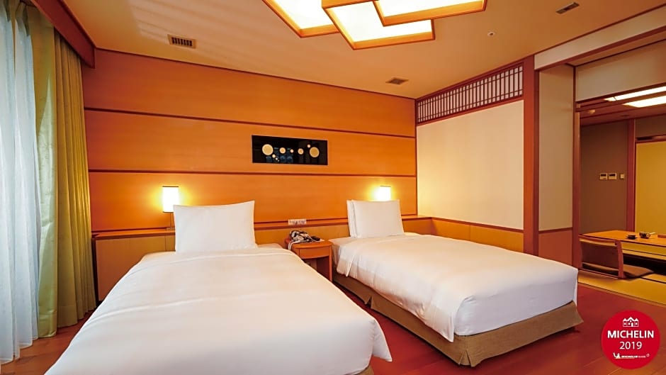 Featured amenities include a restaurant, free Wifi, free shuttle service, and a 24-hour front desk. The property also offers a free sauna and hot spring bath, a steam room, air conditioning, a bar, private entrance, and soundproof rooms with a garden view. Upper floors are accessible by elevator, with balconies and bidets adding comfort. Non-smoking rooms are available, and meeting/banquet facilities are offered for extra charges. Kids' meals are available for an additional fee.