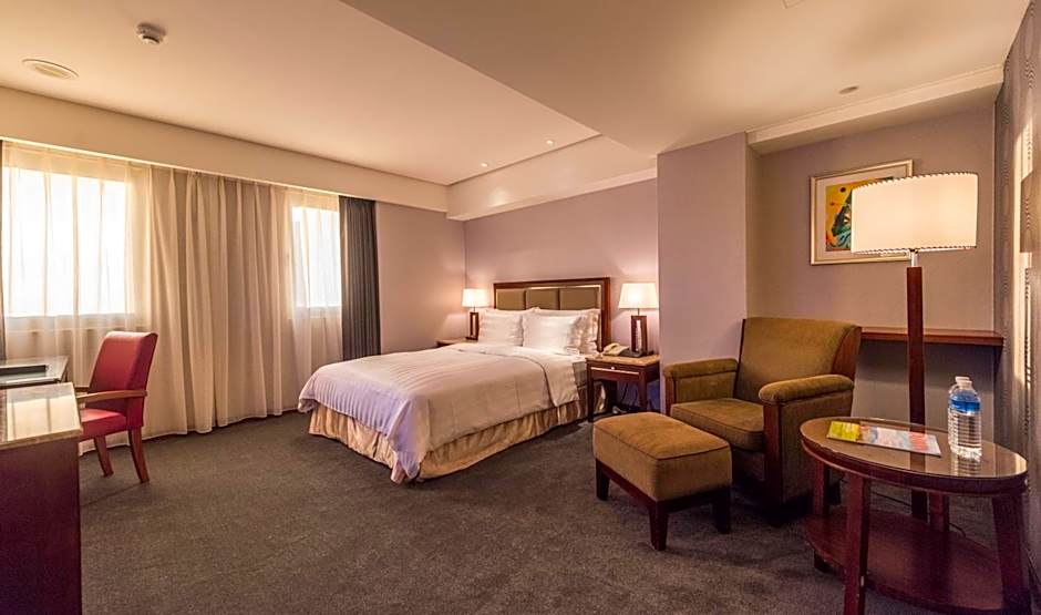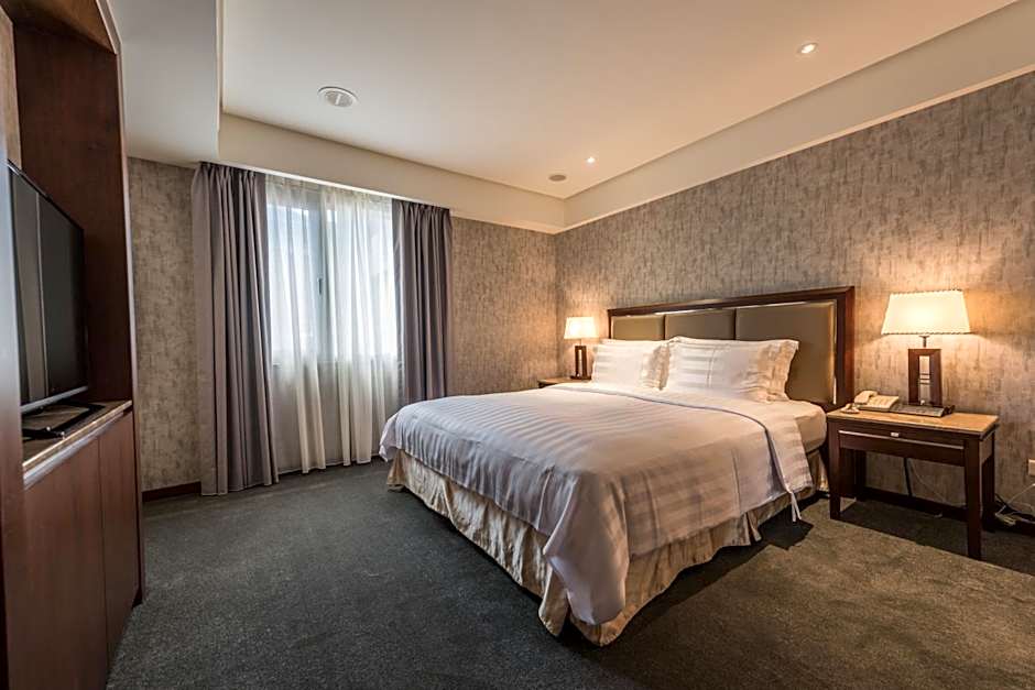 An old 4-star property. Huge room (superior twin suite). Good rain shower. Comfortable bed and comforter. AC worked well and kept a stable temperature without too much humidity (not a given in Taiwan). Delicious Chinese breakfast, with different dishes each day. Great location -- less-than-5-minute walk to Dongmen Market yet in a quiet section of Jinshen South Road. Staff was professional and helpful. A very good value. Won't hesitate to stay here again and will recommend to friends and family.