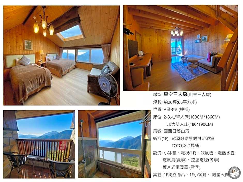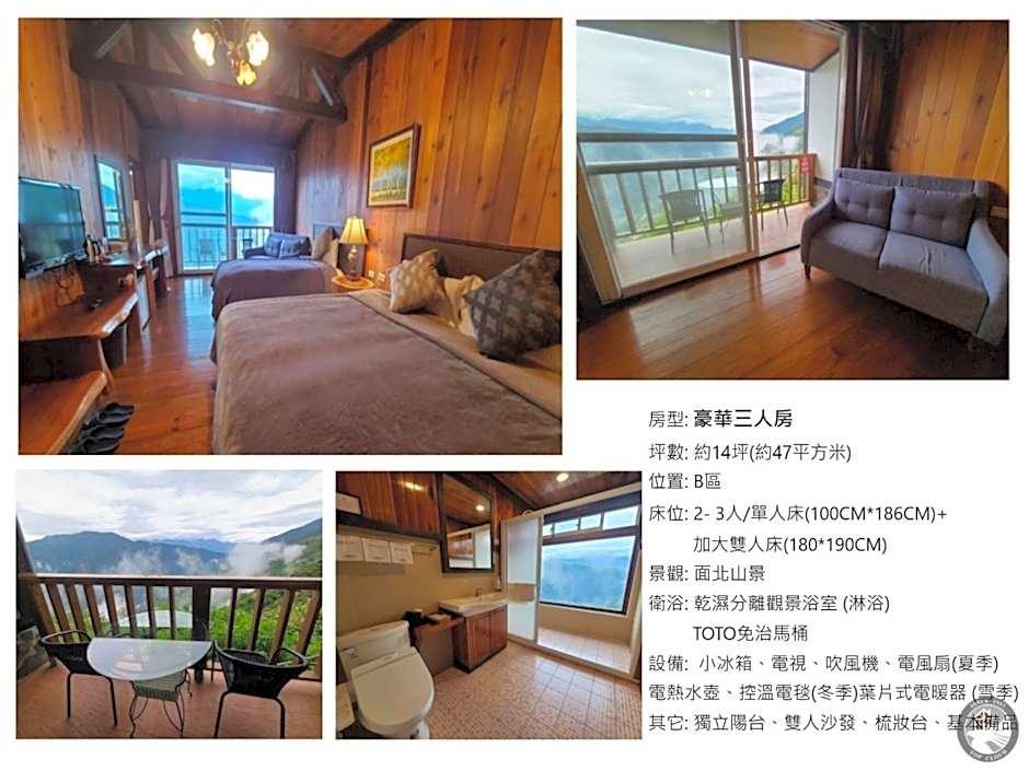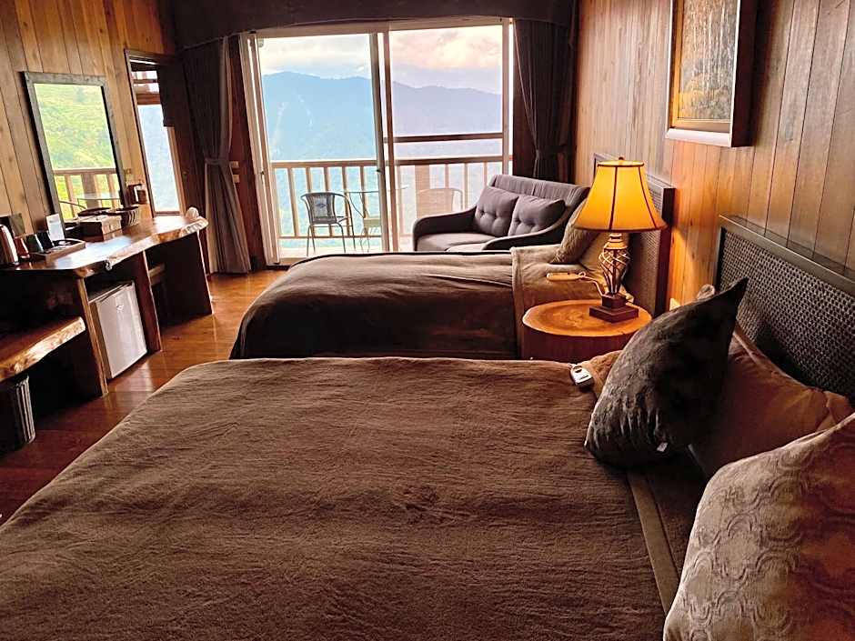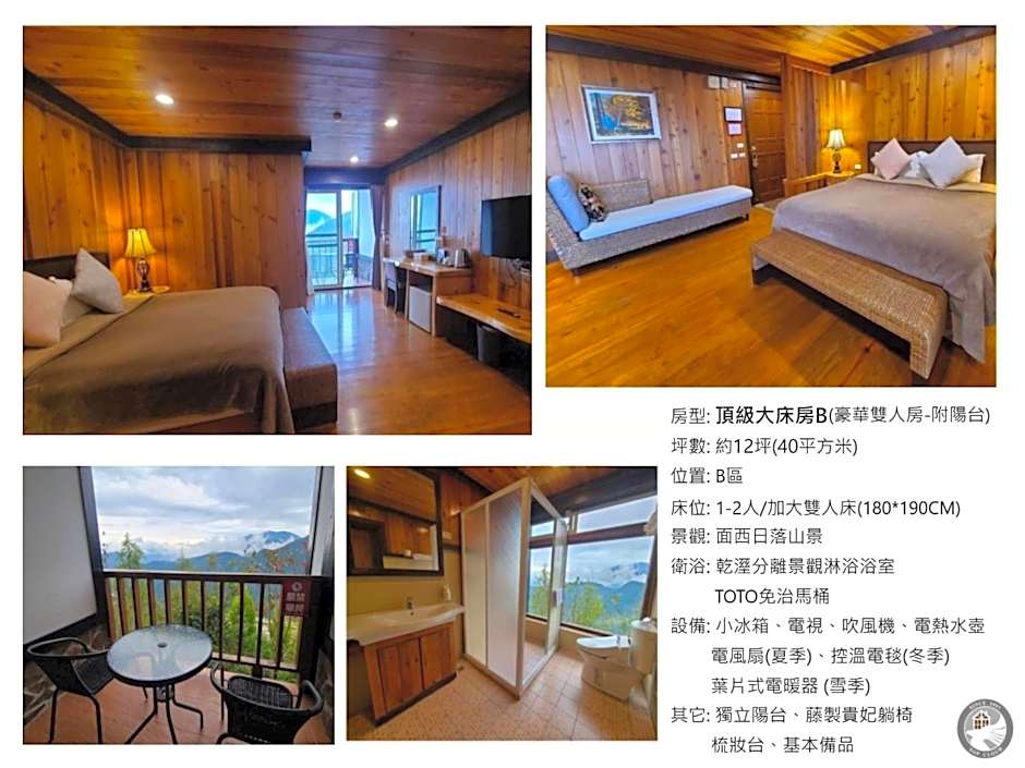Room had an amazing view from the balcony / shower (note the shower is not open air and there is a glass separating). The toilet is a Japanese style toilet with bidet and heated seats which is comfortable! The location of the hotel is great, one of the most north hotels closest to cingjing farm, and a downhill walk to nearest amenities. Note that the hotel is located off the main road with either a ride or walk in. The hotel arranges a pickup service from Taichung HSR station (via a local bus agency OKbus) which was very convenient. Front counter also offered us an upgrade (paid) for our room to a larger room