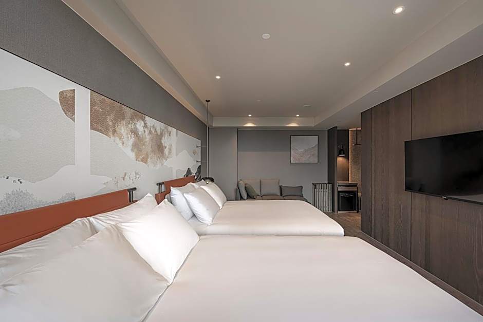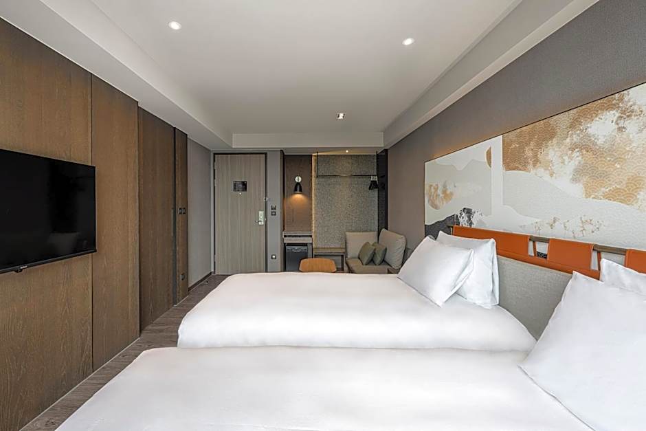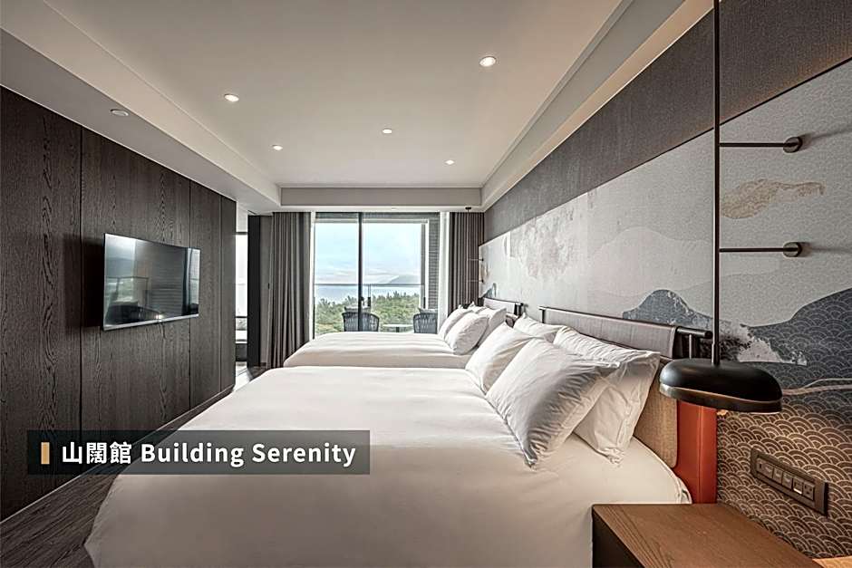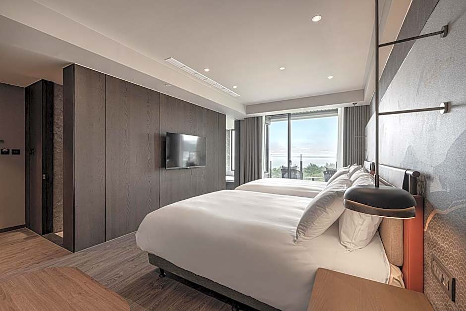 This room type provides two queen-sized beds (150*79 in). The room is equipped with free WIFI and dehumidifier, and provides a separate shower room, electric toilet seat and bathtub; it has a balcony rest area and a bathroom space next to the window view. Book this room type to enjoy free-flowing selected red wine and white wine, local light meals carefully selected by the chef, etc. Meal contents and serving method are subject to the hotel.