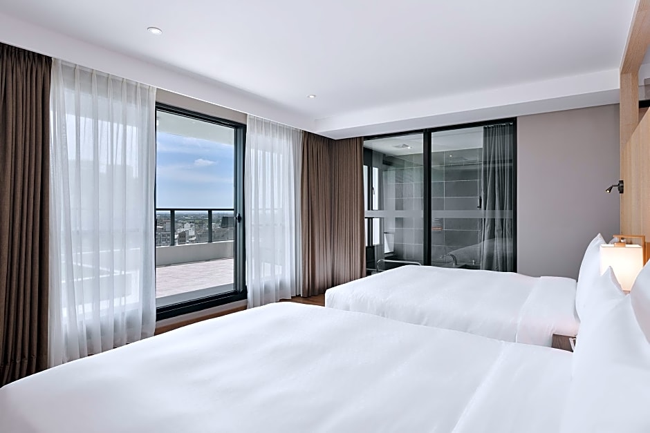 The spacious suite features 1 separate bedroom and 1 bathroom with a bath and a shower. Featuring a balcony with city views, this suite also provides a mini-bar and a TV. The unit offers 2 beds.