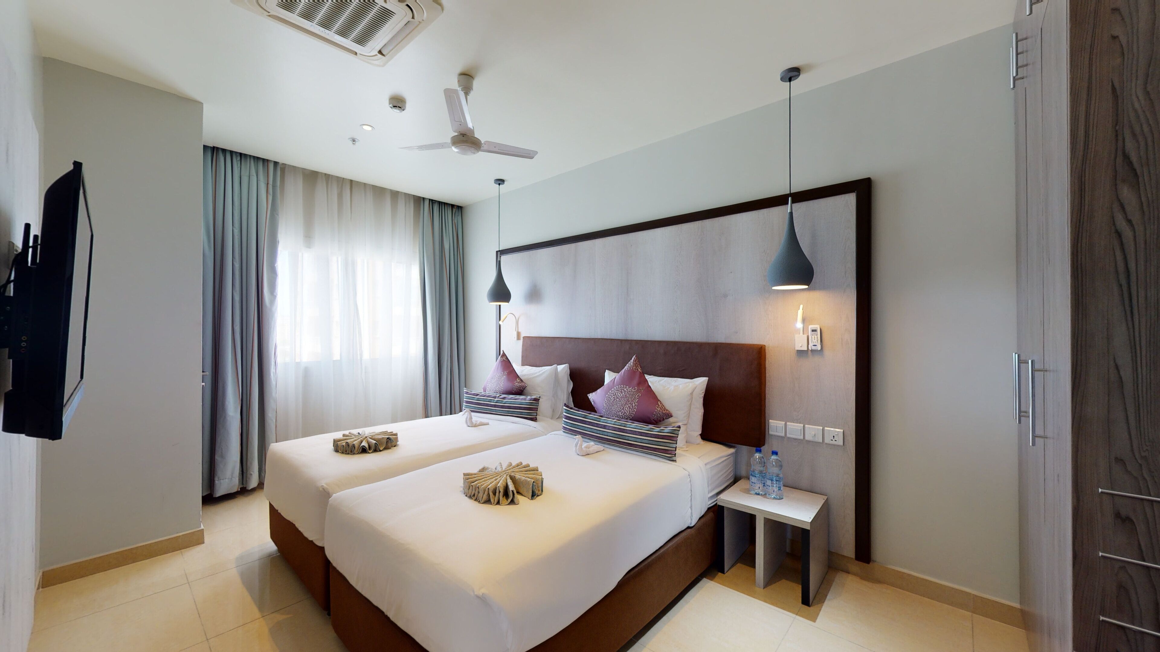 Got upgraded to 2 bed apartment since 1 bed were very popular and got sold out. Fantastic choice for more space and ambience. Well laid out. Great to have what seems like a hotel but with an apartment facility to cook and clean where needed. Powerful showers. Great use of washing machine and drying rail on the balcony. Good to note there is a restaurant on ground floor and a gym. Swimming pool is still being built which would be a great addition. Staff were exceptional! The front desk manager, Happy, Trichia, Joselyne, Sandra, and Sharon. It was nice to meet the owner plus Zoey too.