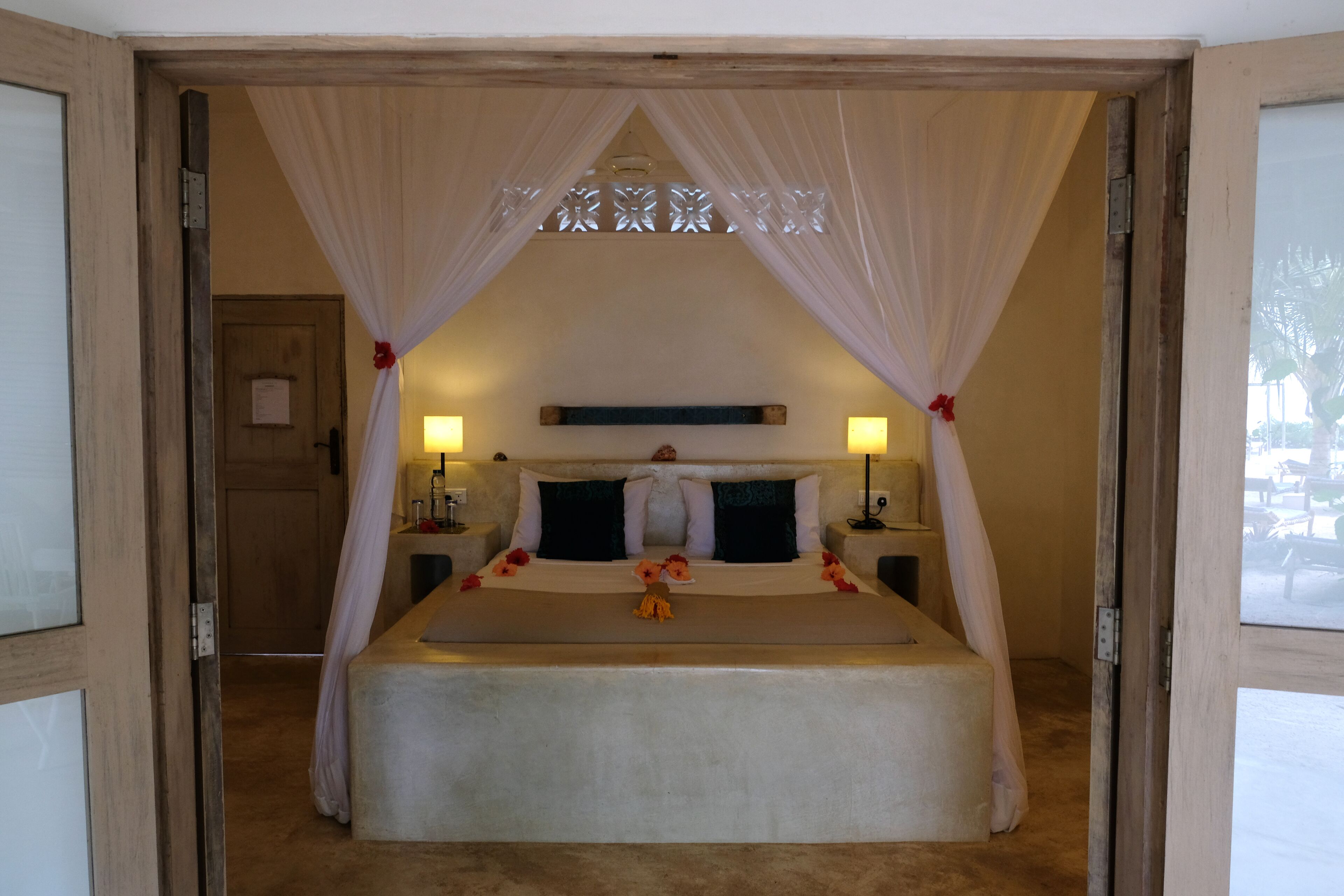 As it is small and cozy hotel then eating( also breakfast) is a la carte and kitchen is really good, coffee is good and restaurant seating area(outdoors only) provides relaxing views. Nice choice of wines and cocktails served from glass like tableware even at the pool/beach area. Local "salesman" are polite enough and not too many, they are also kept away from Hotel territory. Two hotels share same facilities but remain a boutique quality. Staff is friendly and helpful. Trips are organized even with with short notice. Nearby at the beach also many other eating places, which we did not visit as hotel restaurant provides variety of good quality food (probably not always cheapest choice in the jambiani beach) Rooms are spacious and bed was good. You can use either fan or AC. Nice touch with complimentary beach bag and hats for use during your stay. Excellent wifi in rooms and outdoor areas. Beautiful outdoor areas, with lot of sunbeds, swings and seating areas. Small pools are with good temperature. Electricity outage is rather regular, but this is more about country than hotel maybe.