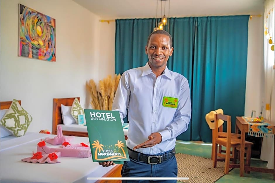 My husband and I came for a holiday to Zanzibar. We did not expect the food in the restaurant, the service surprised us. The hotel is located in a quiet place, a beautiful garden with pumpkin, passion, mango and more fruits. The hotel staff tried very hard to meet all our needs. Breakfast overlooking the ocean, something beautiful! A room clean and huge, only 10 seconds to feel the sand like flour. The price is adequate for the standard of the hotel. We are glad that we chose Haber place and not another commercial hotel. We will definitely return to Haber Apartments at the next opportunity when we are in Zanzibar again.
