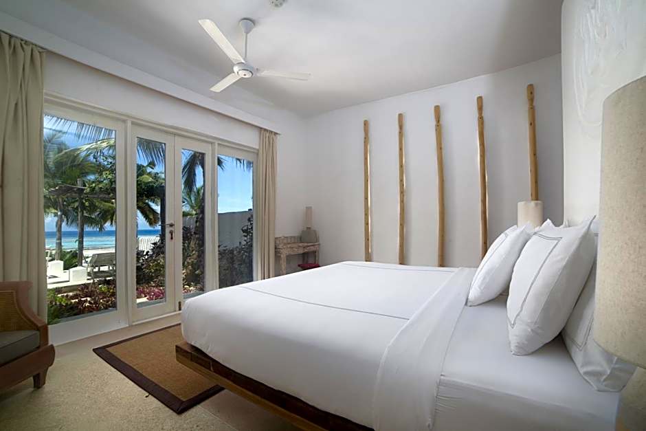 This villa has a Private pool, a Private Beach, Living Room, 2 bedrooms on two floors plus a full en-suite connected bedroom. This Villa is also serviced daily by a private Host during the stay.
