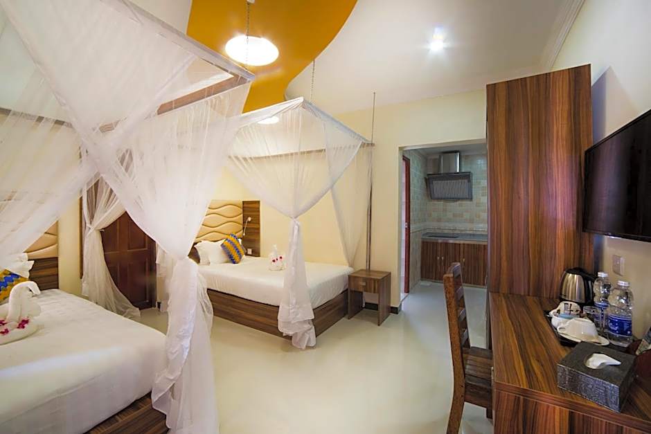 Providing free toiletries and bathrobes, this twin room includes a private bathroom with a shower, a hairdryer and slippers. The kitchenette is equipped with a stovetop, kitchenware and a tea and coffee maker. This twin room features air conditioning, a mini-bar, flat-screen TV, as well as chocolate for guests. The unit offers 2 beds.