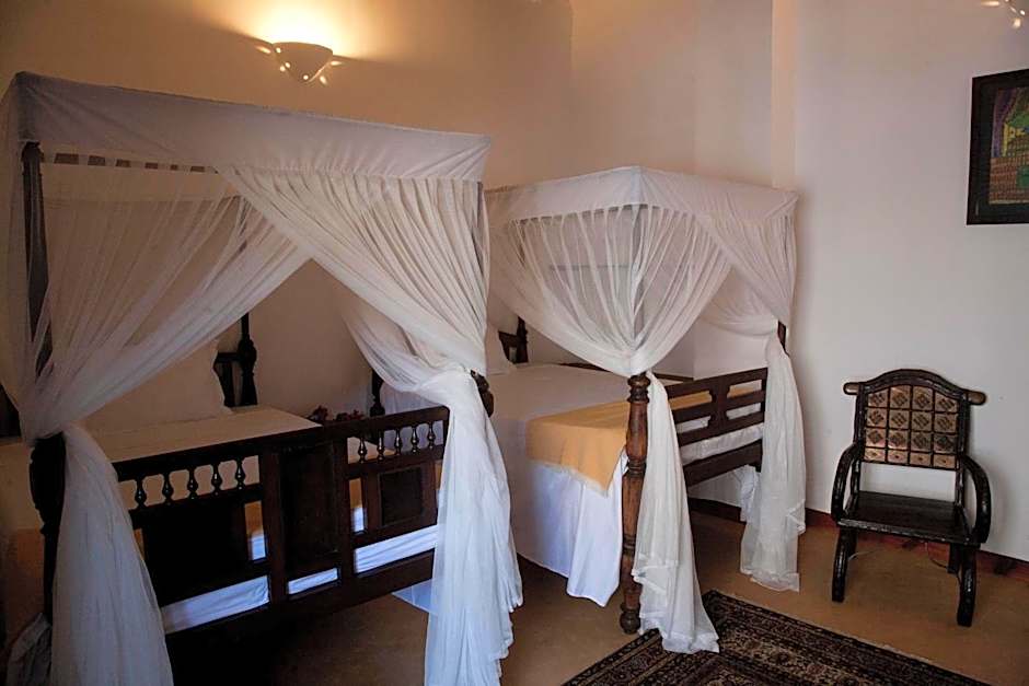 Decorated in Swahili-style, this air-conditioned room features a four-poster bed draped with a mosquito net. It has private bathroom facilities across the hall.