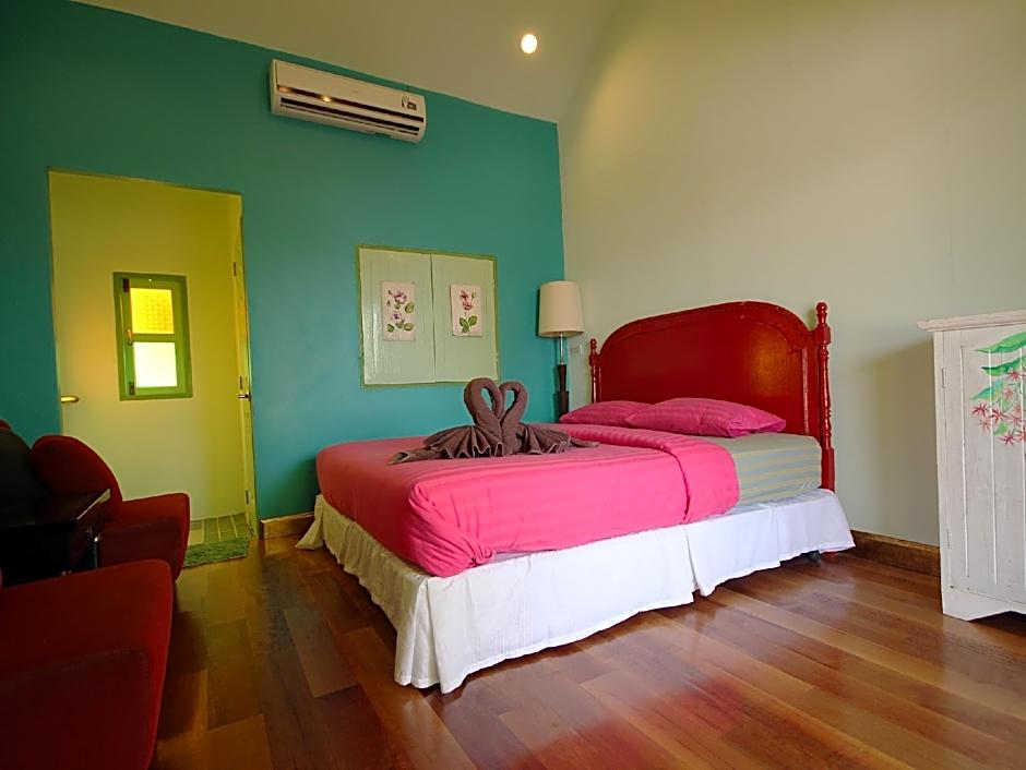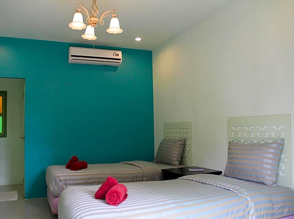 The building is in need of repairs. The rooms we stayed in had a sloping fall to the floor & felt weird, which is a little dangerous at night, along with a badly designed step in the bathroom. There is very little privacy & everything here is built right on top of each other. Poor sound insulation btw rooms & the laneway. The curtains did not block out light & there were gaps in curtains & some windows did not have curtains at all, meaning no chance of sleeping in if you wanted to without an eye mask. Mould on grout, btw bathroom tiles in the shower. Mould on the timber window in the shower. TV had NO channels, so why have a TV in the first place 🤷♂️😅 Very few power points & some were loose & did not work, so hard to find a spare power point to charge your phone in the room. No power point in bathroom for electric shaver. Cranky badly trained & aggressive dog at the guest house & stray dogs everywhere you walk making it dangerous & you need to be on your guard everywhere you go. Rubbish everywhere & filthy. No one here seems to be house proud or keep maintenance up on their houses & guest houses. Give this area a miss & spend time in either Cha-am or Hua Hin which are both much cleaner & more interesting. For some reason, it was also hotter here than Cha-am & Hua Hin which are also much cleaner. VERY basic 2.5 star rooms.