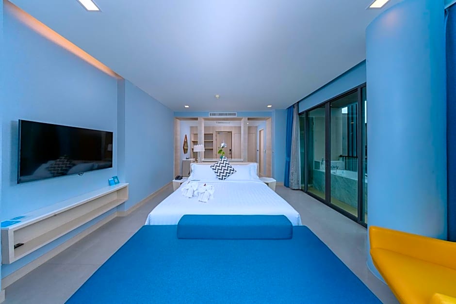 Guest rooms come in a range of Deluxe options, including Deluxe Pool Access and Deluxe Pool View, along with Twin, King, and several Deluxe Family configurations. Deluxe Pool Access accommodates 2 adults and 1 child with a queen bed, while other layouts offer various bed arrangements and capacities. Terraces and balconies invite outdoor vibes, and higher floors are accessible by elevator for easy views and breezes.