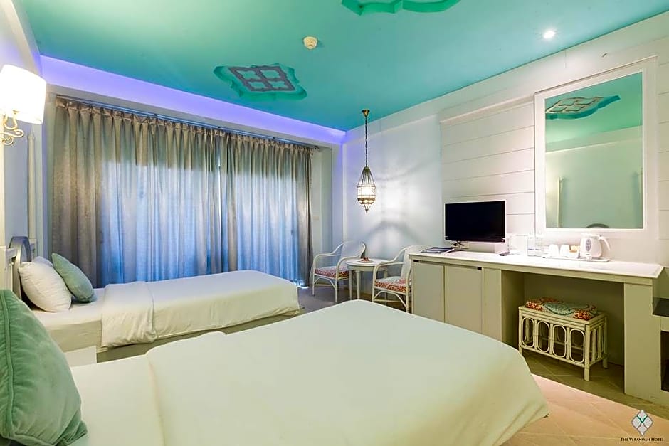 The Verandah - SHA Extra Plus hotel offers a variety of room types for guests. The Deluxe Double Room is a smoking allowed room with a queen-size bed, accommodating 2 adults. The Superior Double or Twin Room does not allow smoking and has either twin beds or a queen-size bed, accommodating 2 adults. The Family Room is a smoking allowed triple room with a twin bed and a queen-size bed, accommodating 3 adults.