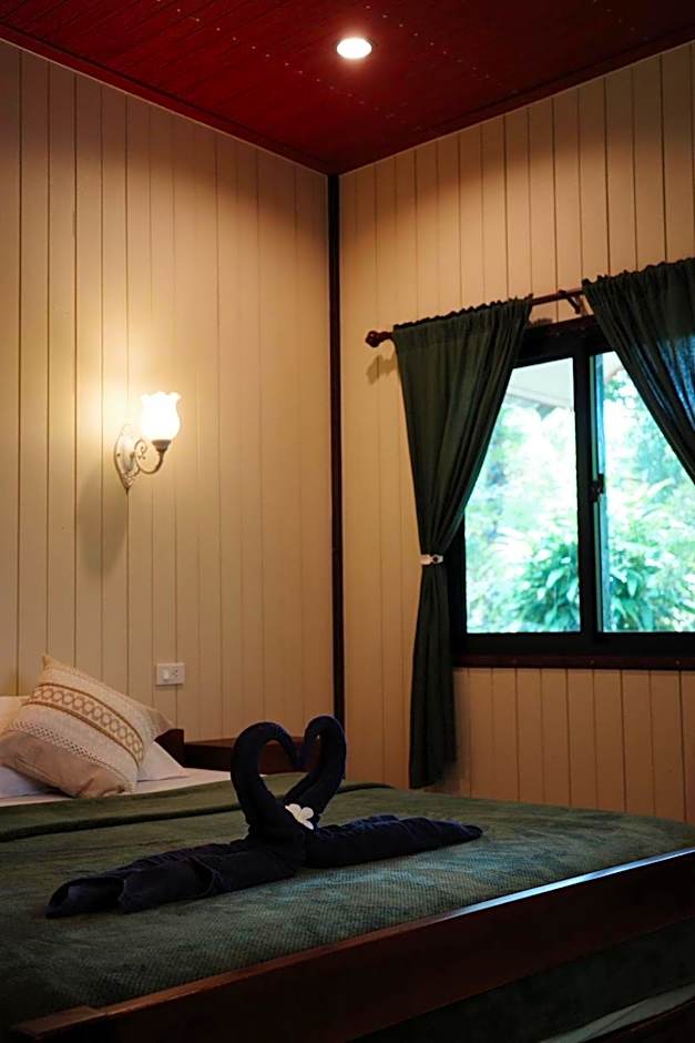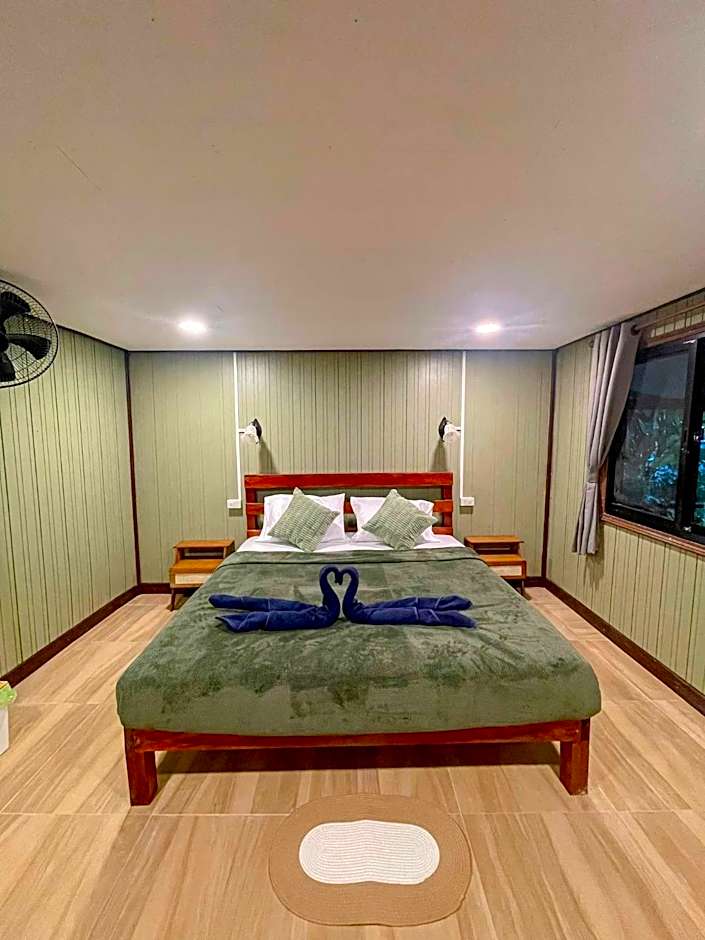Choose from a range of room types to suit your needs at Khao Sok Green Mountain View. The Deluxe Bungalow with Garden View is perfect for couples, offering a cozy and comfortable space with a queen-sized bed. If you're traveling with friends or family, the Bungalow with Garden View can accommodate up to four adults with two queen-sized beds. No matter which room you choose, you'll enjoy the same serene garden views, ample space, and a peaceful atmosphere away from the hustle and bustle of city life. Get ready to relax and recharge in these charming bungalows, where every moment is embraced by nature's beauty.