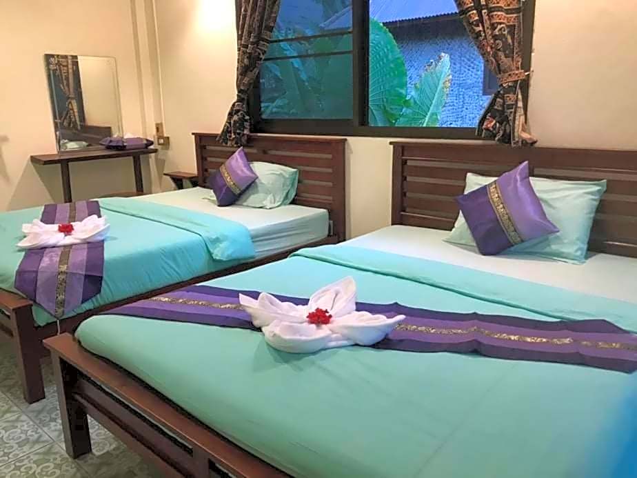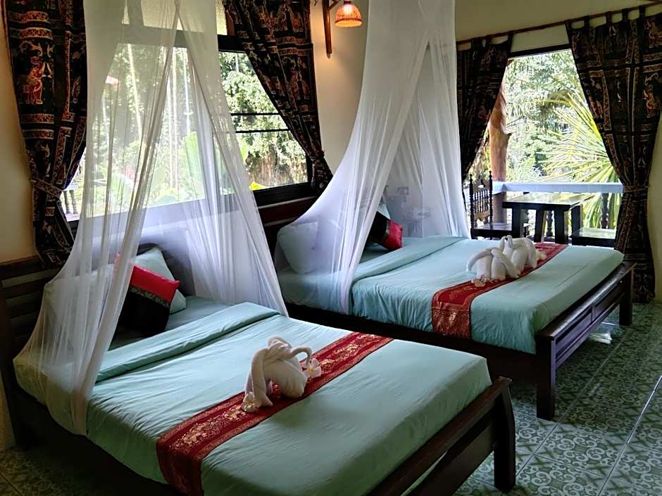 The Khao Sok River & Jungle Resort offers a variety of room types including Deluxe Queen Rooms, Queen Rooms with Garden Views, and Classic Triple Rooms. These rooms accommodate either two adults or three adults, have a size of either 215 sqft or 269 sqft, and do not allow smoking. The beds in these rooms range from queen-size to a combination of twin and double beds.