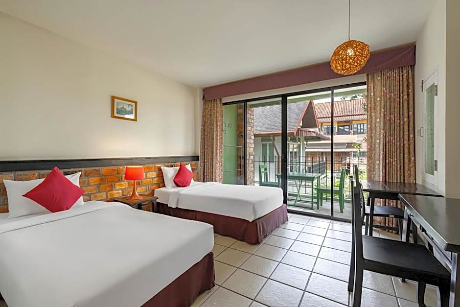 Motive Cottage Resort offers Deluxe Double Rooms with a Queen size bed, accommodating 2 adults, and Deluxe Twin Rooms with 2 Twin beds, also accommodating 2 adults. Both room types have a room size of 334 sqft and do not allow smoking.