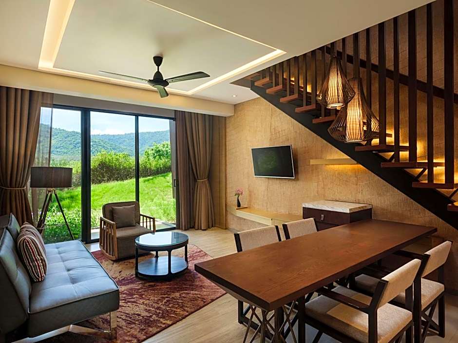 Tucked into Ban Mu Si near the Khao Yai hills, this retreat treats guests to sweeping mountain and garden views while lounging by two outdoor pools—one offering scenic vistas and an adults-only option for a quieter dip. A playground adds whimsy for little travelers, and garden spaces invite slow-nature strolls between swims and sun loungers.