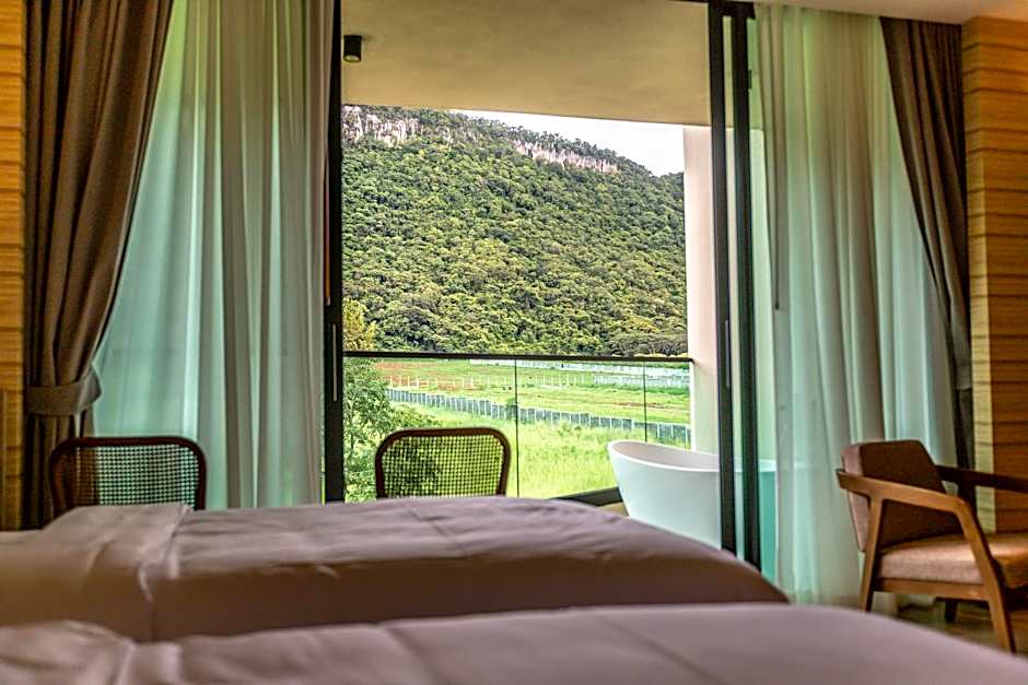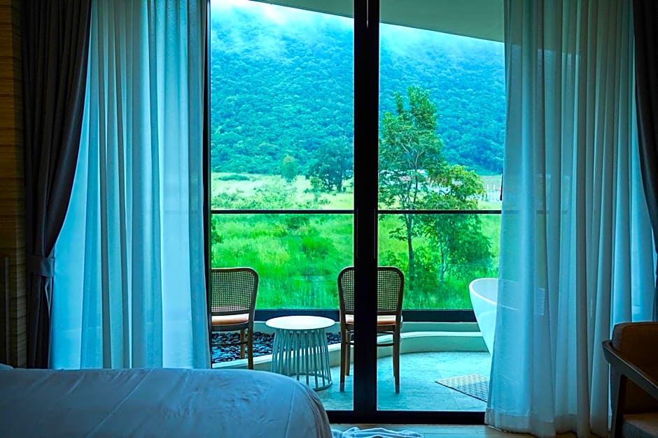 Practical touches include private parking (free), room service, and a fitness center (free). Comfort features include air conditioning, soundproof rooms, and balconies with mountain view or garden view, plus free toiletries, a bidet, and a bathtub. The property features a 24-hour front desk, terrace, sun deck, and garden spaces with a playground and picnic area, plus beach umbrellas and loungers (free). Shuttle service (extra charges) and airport shuttle (extra charges) are available, as well as meeting/banquet facilities (extra charges). With a location near Pak Chong and scenic mountain views, the retreat blends comfort with easy access. Only cash is accepted.