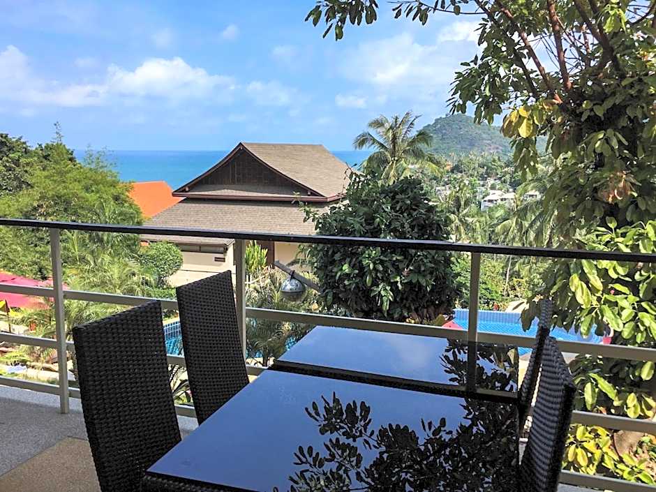 Located on the upper level, this is the property's most spacious apartment. It offers a panoramic view of the ocean and tropical mountains. The large balcony is furnished with an outdoor dining table and chairs, making it an ideal place to take in the sunrise or gaze at the stars. The private bathroom features a rain shower and comes with towels and free toiletries. The living room has no air conditioning, only the two bedrooms are equipped with an air conditioning in each room.