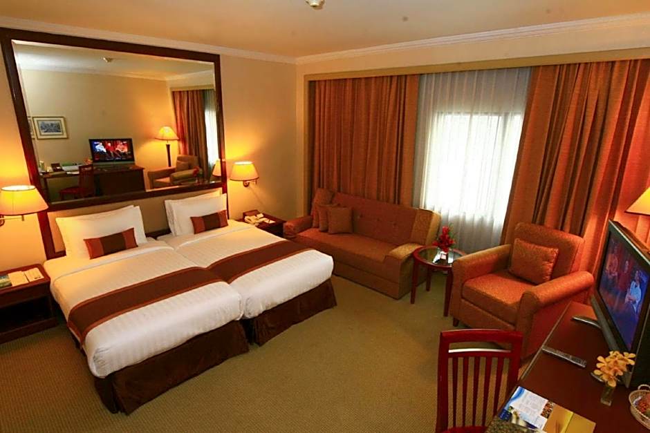 Mas espere, há mais para aprimorar a sua estadia! Abrace o relaxamento e renove seu espírito no luxuoso spa do hotel, perfeito se você quiser relaxar após um dia explorando as vibrantes ruas de Bangkok. Fuja da agitação enquanto se entrega a uma massagem relaxante ou desintoxica seu corpo na sauna, saindo rejuvenescido e pronto para sua próxima aventura. Com as piscinas coberta e ao ar livre disponíveis durante todo o ano, você pode dar um mergulho refrescante ou relaxar no deck ao sol com uma bebida fresca na mão, aproveitando o sol tropical enquanto absorve as vibrações de férias.