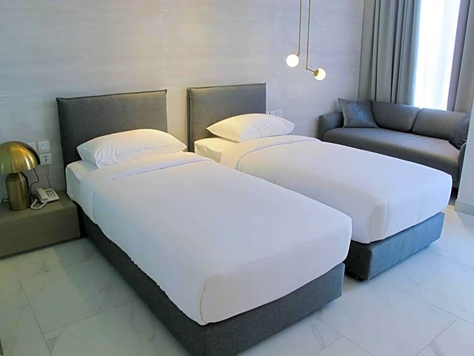 This twin room's special feature is the rooftop pool. Providing free toiletries, this twin room includes a private bathroom with a bath, a shower and a bidet. In the well-equipped kitchen, guests will find a stovetop, a refrigerator, kitchenware and a microwave. This air-conditioned twin room consists of a dining area, a flat-screen TV with cable channels a washing machine and a balcony. The unit offers 2 beds.