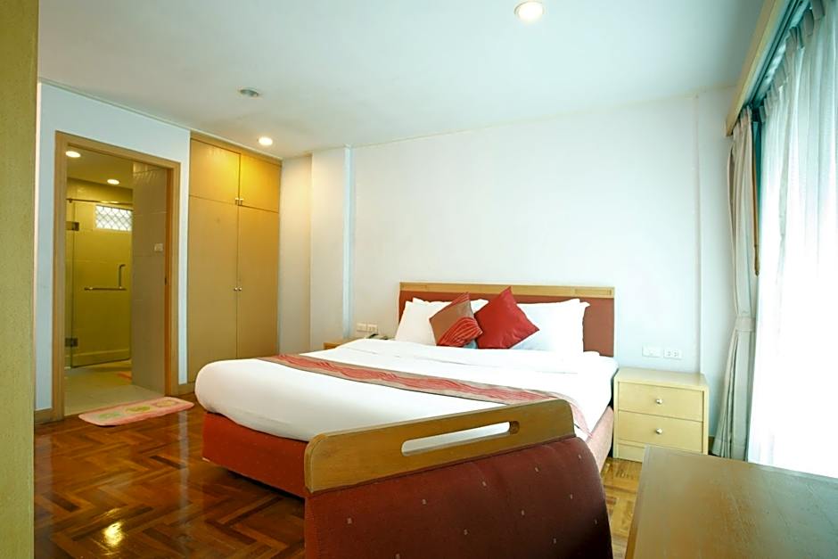 1- It may be not important for many, but the staff were extremely friendly and cooperative, they reach the room in literally seconds when you call them. 2- We required an early morning check-in, which was done without any extra fees 3- We extended our check-out time without any extra fees 4- Its location is not really far from Bumrungrad hospital (It is around 5-10 minutes by walking, but there is a disadvantage that I’ll mention in the disadvantages section) 5- Nice for families (we were 6 members), we booked a 3-bedroom-apartment and the space of the living room was really amazing and room facilities were convenient. 6- The apartment was clean and was nicely cleaned each day by the staff. 7- No noises from traffic or other apartments. 8- Whenever anything was broken, the staff immediately fix it (there was no electricity in the kitchen and the hand holder sprayer in one of the bathroom was broken. And they were fixed as soon as we called them)