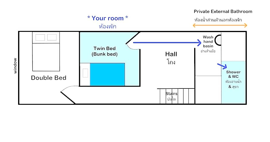 Room offers air-conditioning, a flat-screen satellite TV and an private bathroom. The room has no windows. This room is accessible by stairs only and not suitable for eldery or disabled people.