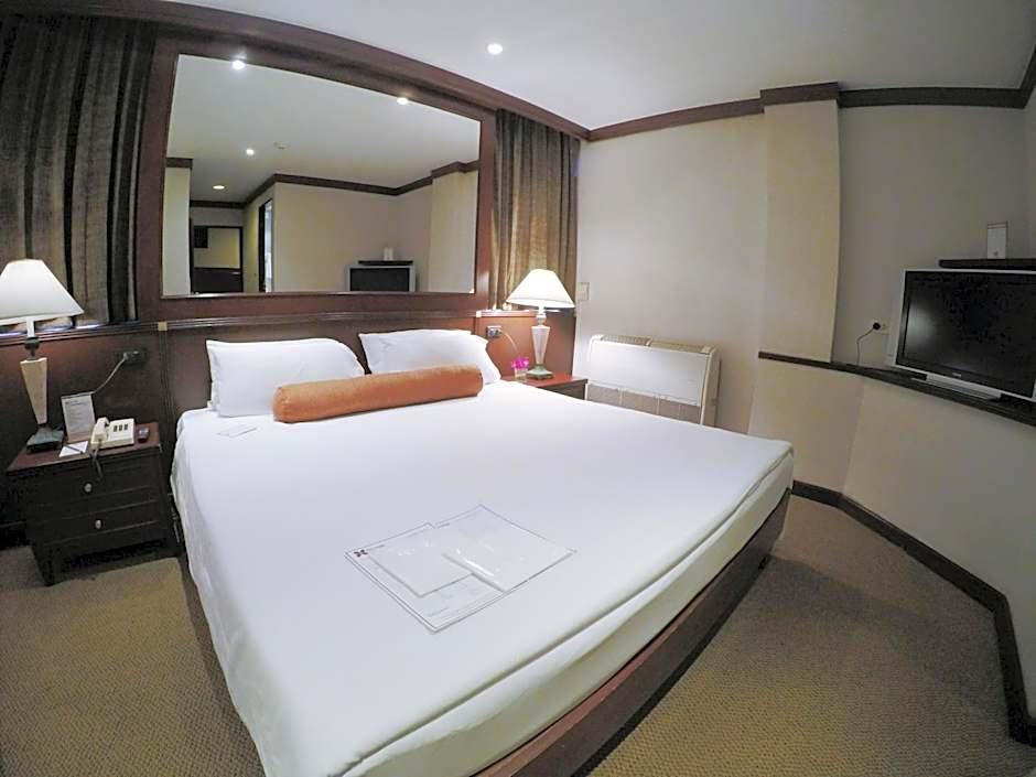 Larger than Standard Double Room, this corner room comes with a flat-screen TV, a safety deposit box and a a mini-bar. Its private bathroom is supplied with a bathtub and a shower.