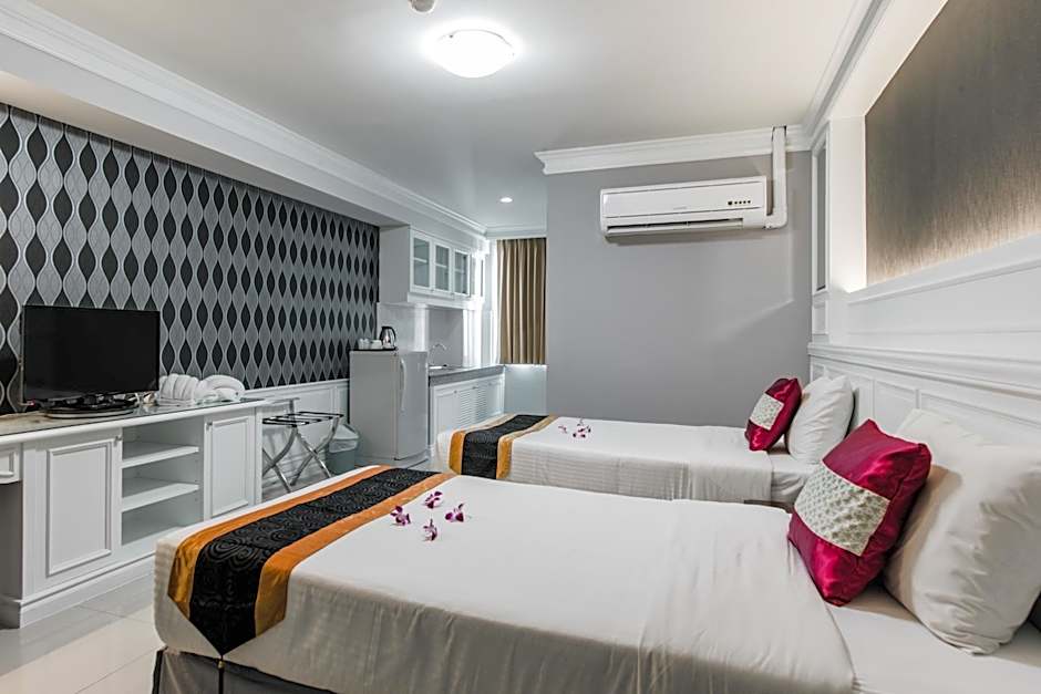 At the Convenient Park Bangkok hotel, there are Superior Double or Twin Rooms, Deluxe Twin Rooms, and King Suites available. The rooms are all non-smoking and have a size of 344 sqft for the Superior and Deluxe rooms, and 689 sqft for the King Suite. The Superior and Deluxe rooms can accommodate 2 adults and 1 child, with two twin beds. The King Suite can also accommodate 2 adults and 1 child, with a double bed.