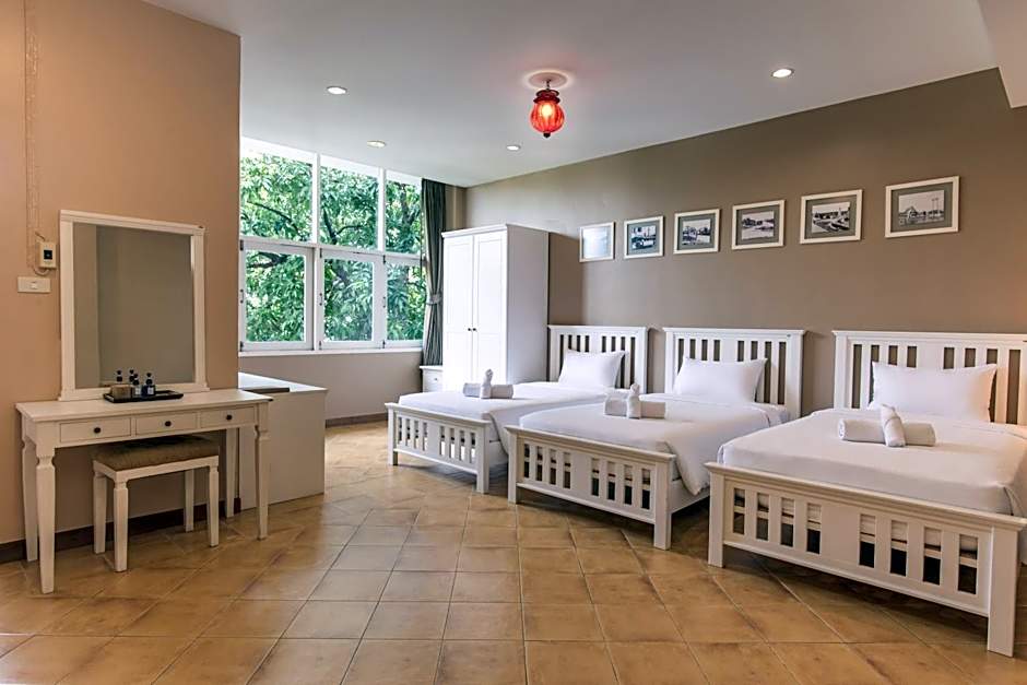 Feung Nakorn Balcony Rooms and Cafe offers a variety of room options, including Quadruple Rooms, Family Rooms with Shared Bathrooms, and Deluxe Double or Twin Rooms. The Quadruple rooms and Family rooms can accommodate up to 4 adults and feature 2 Twin beds and 1 Double bed. The Deluxe Double or Twin Rooms can accommodate 2 adults and 1 child, with a choice of either 2 Twin beds or 1 Double bed. Smoking is not allowed in any of the rooms.