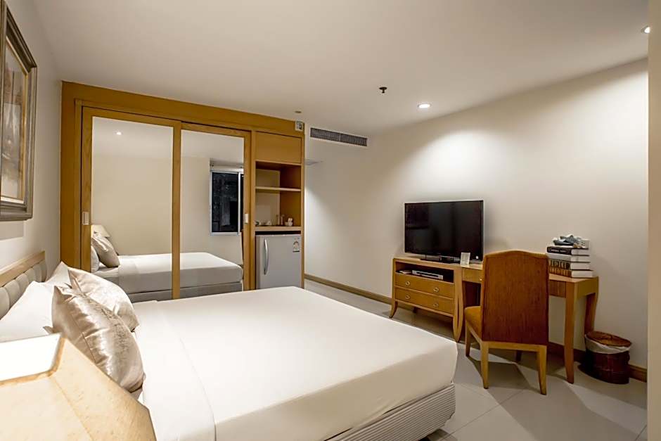 Location+ size of my 2 Bedroom suite+ separate shower+bathtub ensuite for both rooms+ cleanliness+ quiet surrounding and hallways+ Lighting was surprisingly bright. A very quiet lift. Special mention for the breakfast - which was good and tasty and had a decent variety which (apart from the staples - sunny side egg, miso soup, toast, juices..) changes daily in its Thai food and western mix). Plenty of parking in front of lobby building.