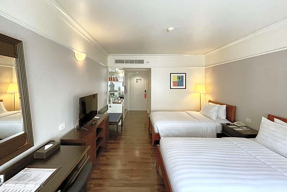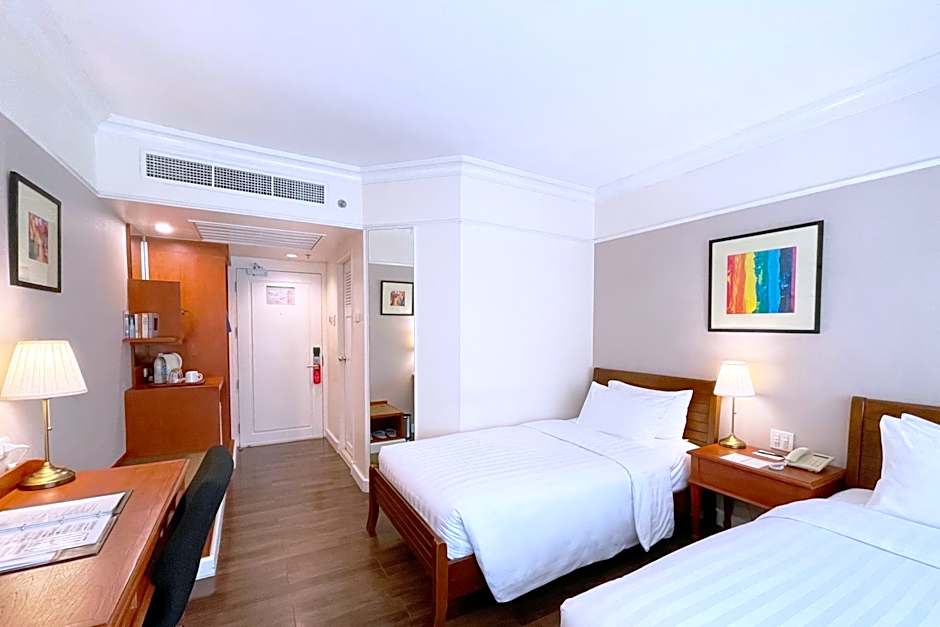 Le Siam Hotel offers a variety of room types including Executive Suites, Exclusive Double or Twin Rooms, and Classic Double Rooms. The Executive Suite is a spacious room with a double bed, accommodating 2 adults and 1 child. Smoking is not allowed in any of the rooms. The Exclusive Double or Twin Room features both a double bed and two twin beds, accommodating 2 adults and 1 child, while the Classic Double Room has a double bed and accommodates 2 adults.