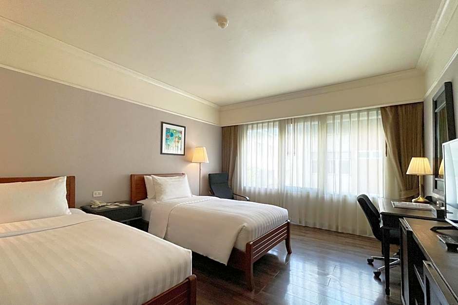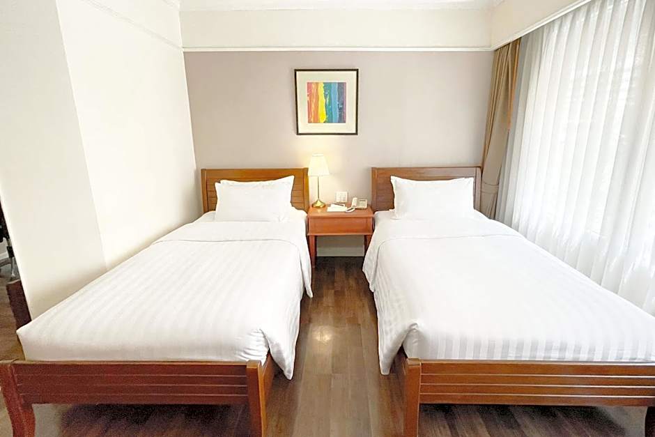 Offering free toiletries and bathrobes, this twin room includes a private bathroom with a bath, a hairdryer and slippers. The air-conditioned twin room offers a flat-screen TV with cable channels, a tea and coffee maker, a wardrobe, a safe deposit box as well as city views. The unit offers 2 beds.