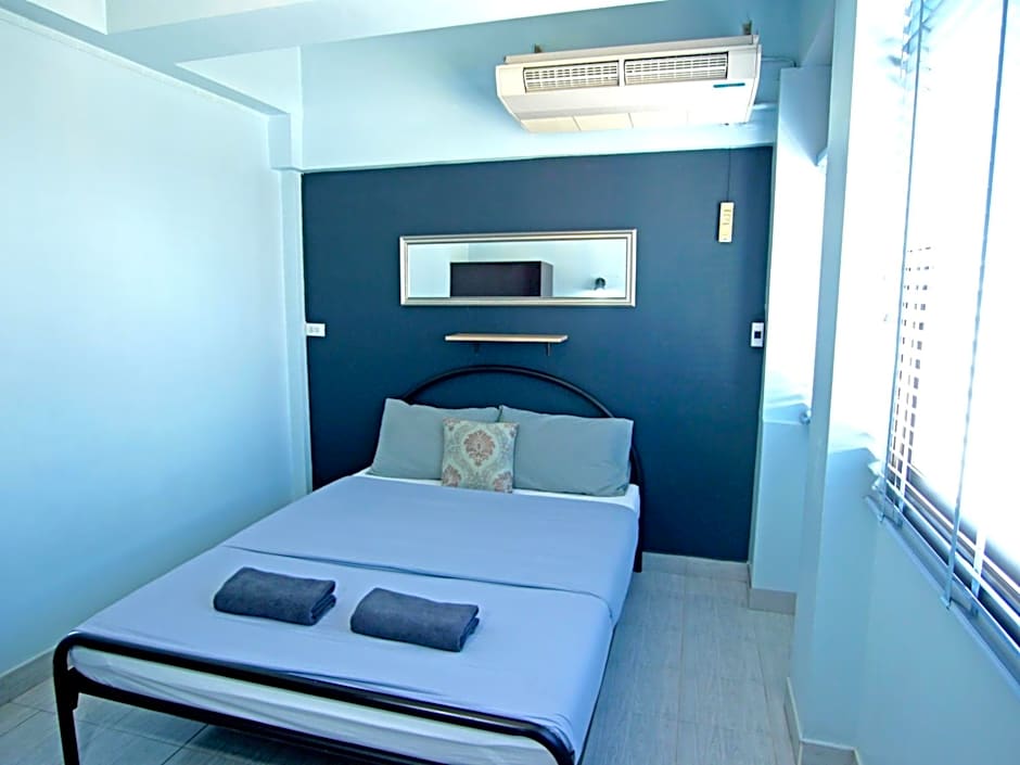 perfect budget and basic accommodation. but everything is provided with an a/c in the room. shower gel. towels. toilet paper. there is an elevator in the building. rooftop with an amazing view. the location was perfect, everything is walking distance. there is a small restaurant in front of the reception which is very handy for breakfast/lunch. 7/11 also just across the road. laundry service next door. Boy who works at the reception is super nice, friendly, helpful and always up for a good chat. I had a room facing the main road. it was not as noisy as people say in the reviews. I slept fine for 3 nights there. plus in the middle of the night there is almost to none traffic driving anyway.