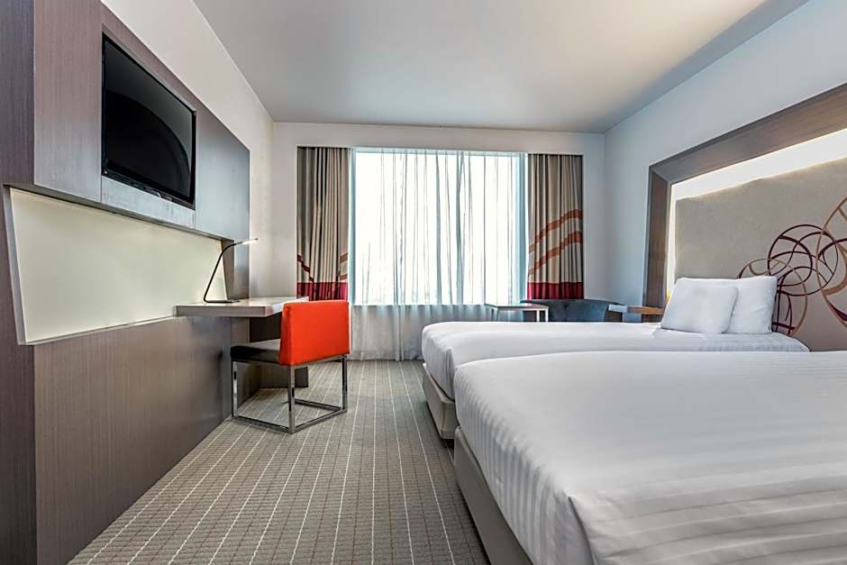 Guests at Novotel Bangkok Ploenchit Sukhumvit can enjoy various leisure amenities during their stay. The hotel features an outdoor swimming pool with a beautiful view, perfect for relaxing or taking a dip. For families, there is also a dedicated kids' pool available throughout the year. Additionally, guests can take advantage of the fitness center, ensuring they can maintain their workout routines while away. Those seeking culinary experiences have the option of dining at the hotel's restaurants, The Square and Dee Lounge, which offer a range of international cuisines in modern and family-friendly settings. The hotel also provides live music or performances, adding an entertainment option for guests. Furthermore, for relaxation, there is a sauna available, allowing guests to unwind during their stay.