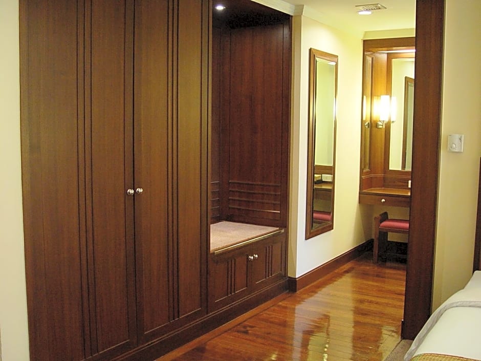 Executive Deluxe Room is 517 square feet and includes either a king-size bed 150-183 width or 2 queen-size beds 150-154 width plus extra beds on demand, desk, cable tv, hairdryer, tea and coffee making facilities , ironing set, safe, bathrobes, and slippers and is Wheelchair-accessible.