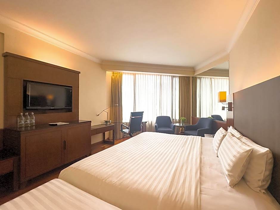 Offering free toiletries, this twin room includes a private bathroom with a bath, a shower and a hairdryer. The air-conditioned twin room offers a flat-screen TV with satellite channels, a tea and coffee maker, a wardrobe, a safe deposit box as well as city views. The unit has 2 beds.