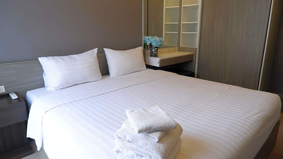 Great location: two minutes walk to the Sky Train, and lots of good takeout restaurants, excellent tailors, and shopping malls. Ten minute walk from Bumrungrad hospital (#1 in Thailand) for any plastic surgery 😀, dental, etc. you may need. On a quiet street. The staff who work there, are wonderfully helpful and super nice people. The apartments are modern, have a good kitchen and w/d. The roof pool REALLY helps on hot, muggy days. Have stayed 2x for 3 weeks each time.