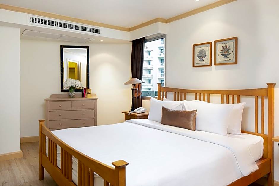 The Riverfront Bangkok - SHA Extra Plus hotel offers a variety of room types, including two-bedroom deluxe and two-bedroom superior rooms which can accommodate up to 4 adults and 2 children. There are also one-bedroom superior and one-bedroom deluxe apartments available, suitable for 2 adults and 1 child. The hotel also offers studio deluxe and studio superior rooms for 2 adults and 1 child. All rooms are non-smoking and feature King size beds or Twin beds.