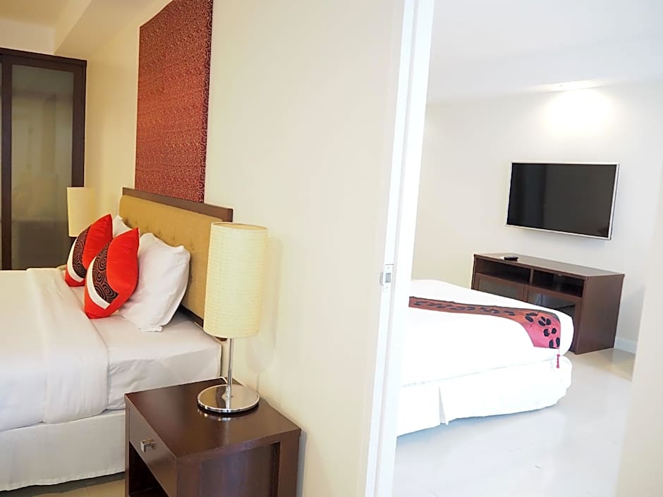 Romance Hotel Bangna offers a diverse lineup of lodgings suitable for couples, families, or groups, from a Deluxe studio (about 377 sqft) to larger suites around 797 sqft, and a family-friendly Apartment, 1 Bedroom that can accommodate up to 10 adults and 6 children.