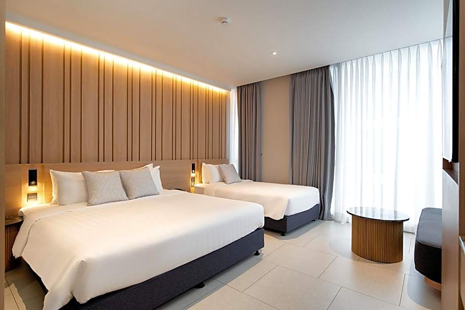 A stunning hotel near IconSiam. They also offer a very clean tuktuk service from the hotel to IconSiam/BTS Station for 20 Baht per person. The rooms were perfect for us for 2 nights. Staff were extremely friendly and helpful. Pool was great, music was great and the cafe downstairs makes some delicious drinks! They offer 10% off for hotel guests. We were also able to check in early and they were also able to look after our luggage after check out. Situated in a quiet residential neighbourhood, you must check out Saan Hotel!