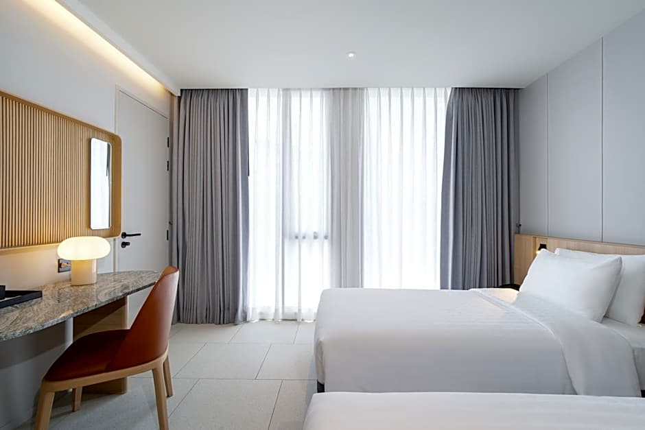 Providing free toiletries and bathrobes, this twin room includes a private bathroom with a shower, a bidet and a hairdryer. The air-conditioned twin room provides a flat-screen TV with streaming services, a seating area, a safe deposit box, an electric kettle as well as city views. The unit offers 2 beds.