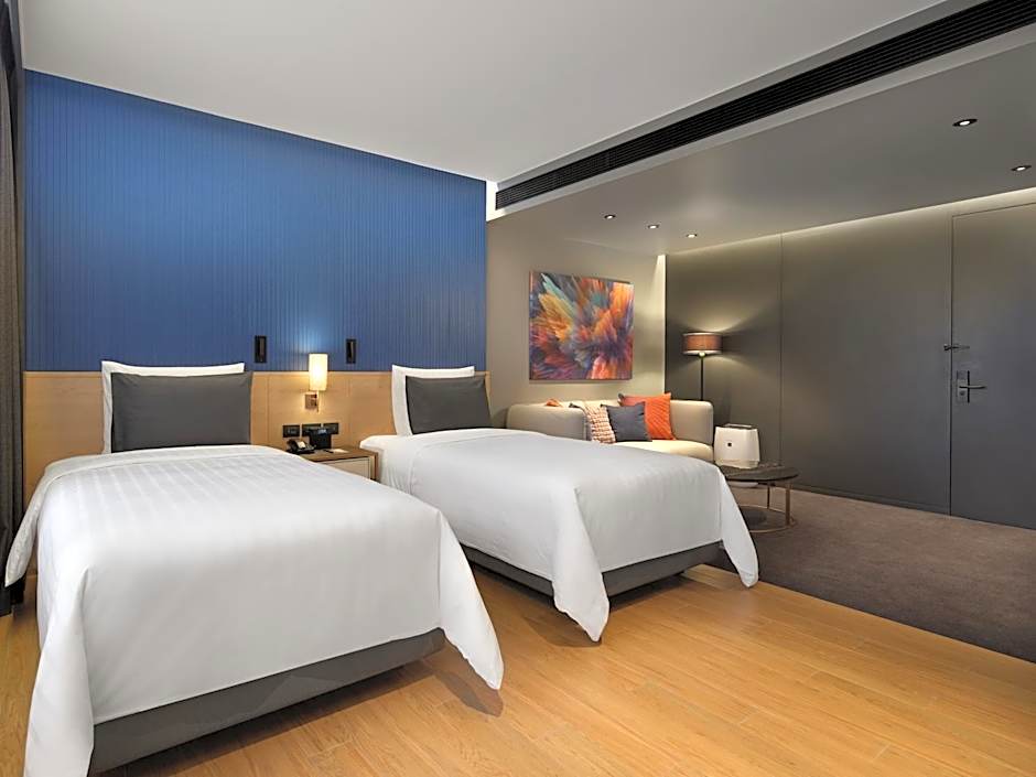 Offering free toiletries and bathrobes, this suite includes a private bathroom with a bath, a shower and a hairdryer. Guests can make meals in the kitchen that comes with a refrigerator, kitchenware, a microwave and an electric kettle. The spacious air-conditioned suite offers a flat-screen TV with cable channels, soundproof walls, a seating area, a dining area as well as city views. The unit offers 2 beds.