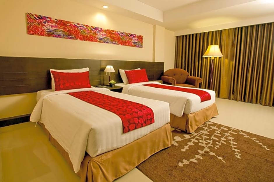 The Sinsuvarn Airport Suite Hotel offers a variety of rooms including Deluxe Rooms and Family Suites. Occupancy can vary depending on the room type, with some rooms accommodating up to 4 guests. Smoking is not allowed in any of the rooms. Bed sizes range from Twin to King, and room sizes vary to accommodate different group sizes.