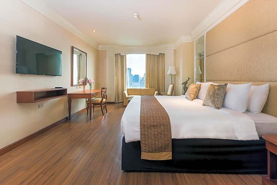 The Emerald Hotel offers Superior Double or Twin Rooms and Deluxe Double or Twin Rooms, both with twin beds and a queen size bed. These rooms are non-smoking and accommodate 2 adults and 1 child. Additionally, the hotel has an Executive Suite with a king size bed, also non-smoking, and accommodating 2 adults and 1 child. Room sizes range from 355 sqft to 969 sqft.
