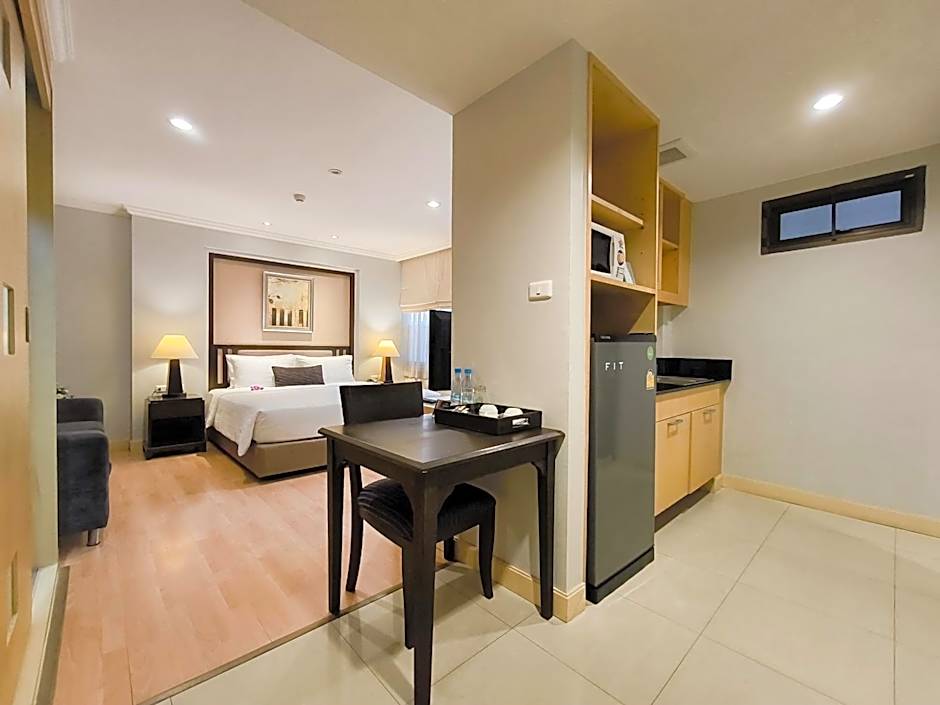 Spacious suite features a separate living room with sofa, 2 armchairs and 2 TVs. Guests receive a cash voucher valued at THB 500 to using on food and beverages at The Continent Hotel Bangkok, located a 5-minute walk away.