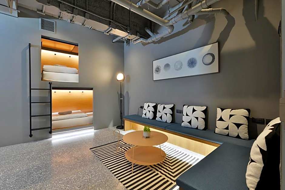 A convenient capsule, with lockers that can be opened with a card. There's a chill zone, a kitchen, a rooftop, and a coffee shop. An excellent place to stay. Hostel guests get a discount at the coffee shop. However, for travelers with large suitcases, there's no proper storage space, so you'll have to leave them in the aisle. The capsules have TVs, which is both a plus and a minus. My neighbor watched TV half the night, making it hard to sleep. Otherwise, everything is great.