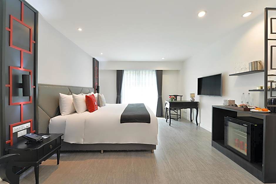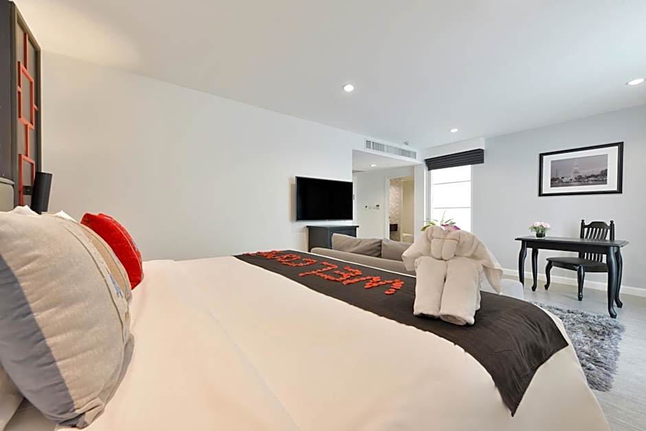 The Villa De Pranakorn hotel offers a range of room types including the Presidential Suite, Suite, King Room, Deluxe Double or Twin Room, Junior Suite with Pool View, and Queen Room. Smoking is not allowed in any of the rooms. The rooms can accommodate 2 adults and do not allow children. The bed sizes vary, with options of King size beds, Twin beds, and Sofa beds.