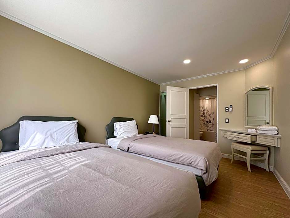 The hotel is a great value for money, great location in a quiet area but also convenient to get bolt or grab car or even walk to the BTS station ( take like 10-15 min) family room is clean , spacious and comfortable a bit outdated but match the hotel star rate Staff is responsive and helpful having a self laundry was also a great addition with reasonable price also having a full kitchen was very convenient Wifi is great and very fast in summary overall stay was great and highly recommnded as a budget hotel in Bangkok